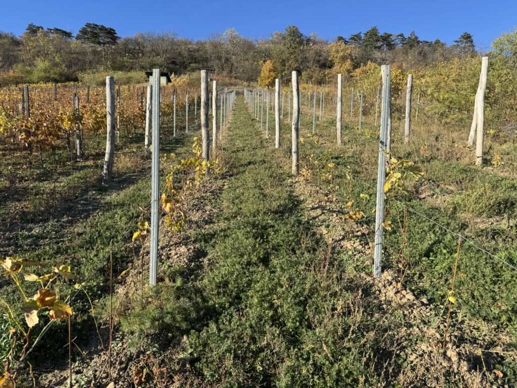 Hledali jsme proto jinou cestu. Takovou, která nebude jen samoúčelnou hrou na hospodaření. A toto hledání nás nakonec přivedlo do viničních řádků. Vinohradničení jsme si vybrali proto, že vinohrady porůstají podobná místa jako ta, na kterých se daří těm nejhezčím a nejzajímavějším stepním rostlinám. No řekněte sami, slyšeli jste někdy bláznivější motivaci k tomu začít dělat víno? Za své působiště jsme si vybrali Svatý kopeček u Mikulova, kde jsme začali zkupovat malé parcely ve strmých svazích. Většinou šlo o velmi zanedbané vinohrady s příliš úzkými řádky, proto jsme většinu z nich vyklučili a nyní je postupně znovu ručně vysazujeme. Ačkoliv stepi na Svatém kopečku mají potenciál být velmi dobrým zásobníkem vzácných stepních druhů pro okolní vinohrady, reálně se tyto druhy do viničních meziřadí téměř nedostávají. Dostat jej do těch našich je náš nejbližší hlavní cíl.